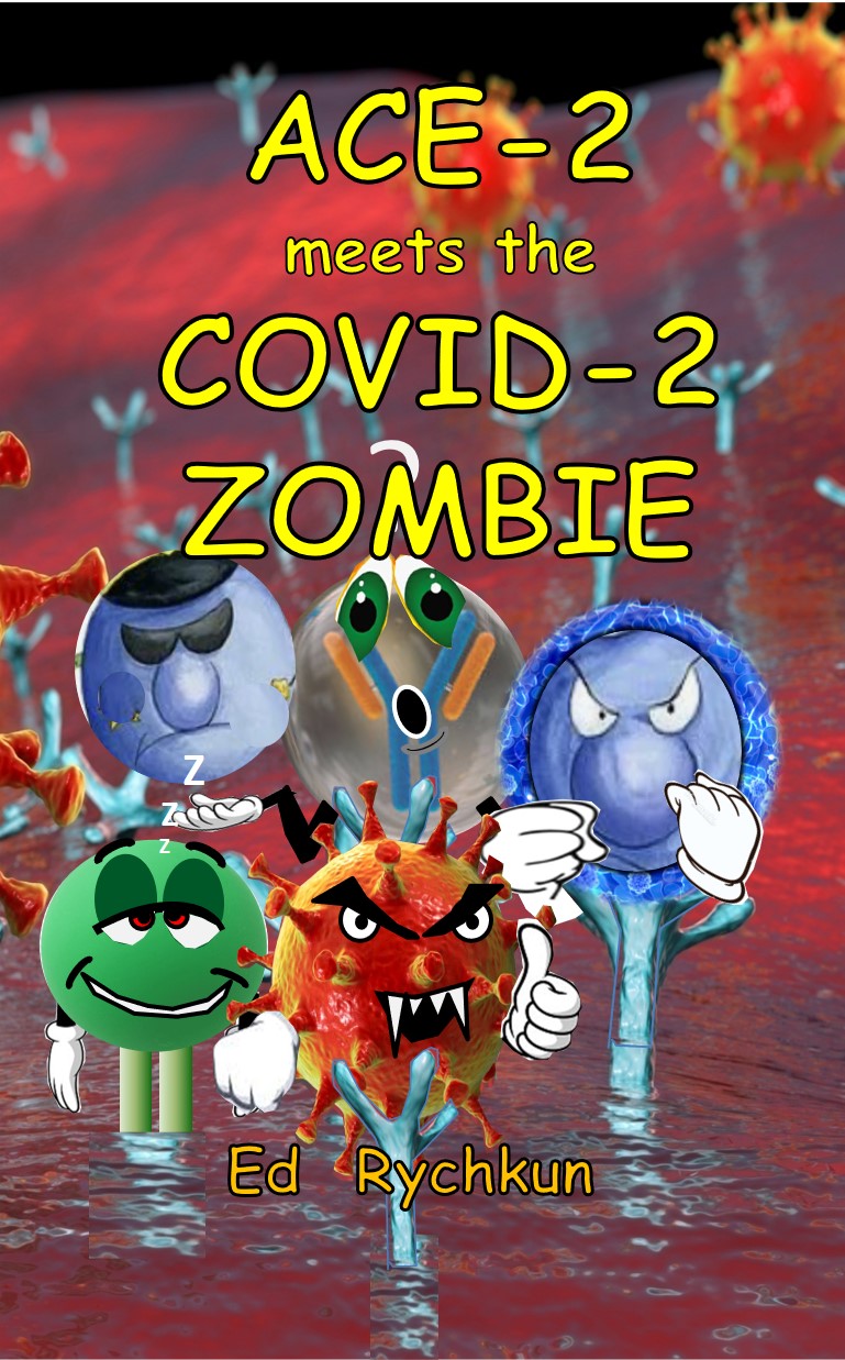 |  | ACE-2 Meets the COVID ZOMBIE ACE-2 meets the COVID-2 Zombie In this first short story in the series The Adventures of ACE2, you will meet the good the bad and the ugly microscopic characters that live in your body in a life-death struggle affecting your wellbeing. In this first story, follow the adventure of COVID-2 the evil zombie virion who had found a way into George’s body by deceiving the ACE-2 receptors on the epithelial cells of the nose and infecting George’s lung cells. In an evil plan to live, evolve and replicate in the host lung cells of George, their victim,  the family has fooled the T cells to strategically march down the bronchial system into George’s lung cells by avoiding the  immune response and detection system of the ACE-2 host cells. The Zombie virions have further enhanced their invasion to proliferate internally in new ways by assimilation and mutation expanding their dendritic invasion methods. As you meet the key players in this drama, CD-8  the killer T-Cell family, and ACE-2 that have been duped into allowing the evil COVID-2 Zombie to infect George you understand why George is on his death bed and how the infecting virions have invaded ACE-2’s cell receptors proliferating in George’s lungs, while ACE-2 has been duped into affecting his heart and other vital organs. After the devastating realization of the deadly plan, can ACE-2 team up with his buddies ACE-1 and CD-8 Serial Killer T Cell to recover what they have lost? Follow the story of how they attempt to save the day and George from his fate. Follow the Good the Bad and the Ugly as they struggle for life. Click here to order from Amazon