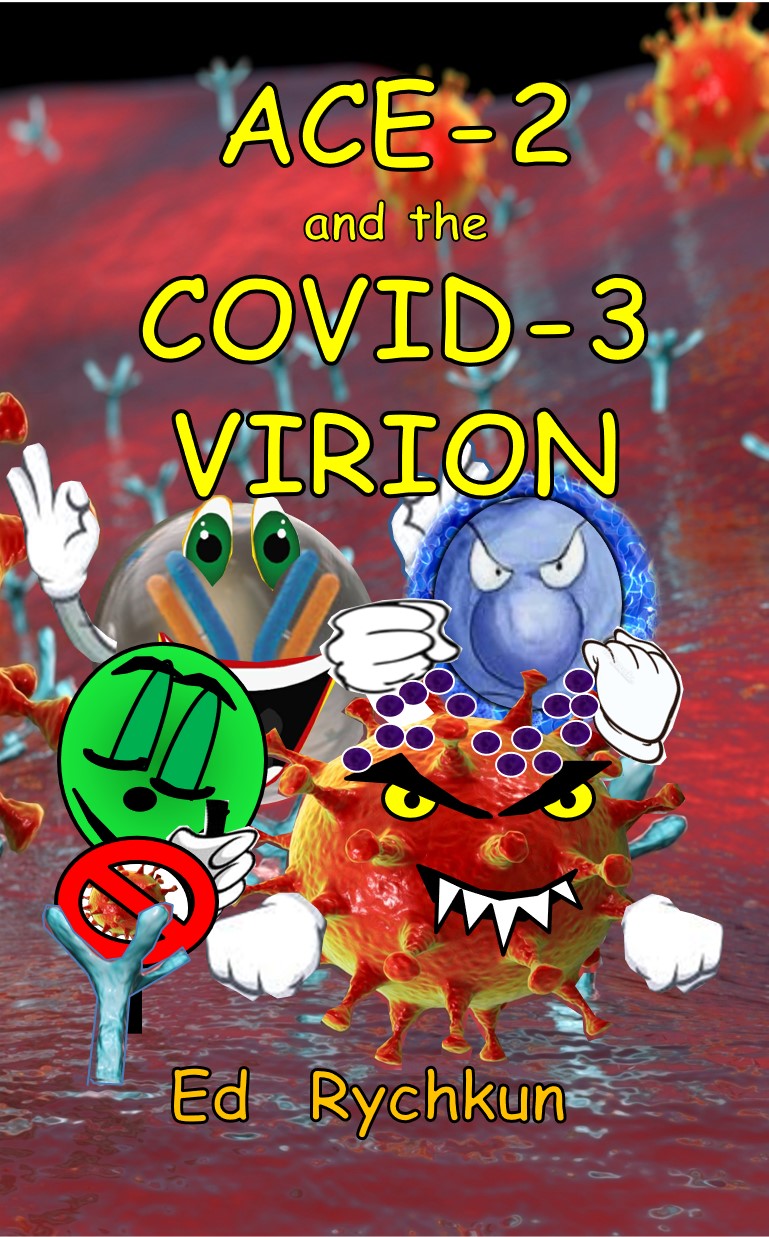 |  | ACE-2 and the COVID-3 Virion ACE-2 and the COVID-3 Virion. In this second short story of the series The Adventures of ACE2, you will once again meet the good the bad and the ugly microscopic characters that live in your body in a life-death struggle affecting human wellbeing. Join the old characters who had lost the first battle, allowing COVID-2 to become a higher evolved virion of COVID-3. Now a new member of the ACE-2 Gang, TLR-2, a skin receptor joins, having been deceived to allow infection of new virions into skin cell hosts. Now they must regroup and stop the new evil plan of deception by the COVID-3 Gang. Having lost the first battle in George, will ACE-2 and his old team of CD-8, and CD-4 be able to come together to win this battle? COVID-3 and his Zombies have mutated with new assimilated abilities to enhance their infectious nature, live longer without a host, and they have expanded their abilities to enter cells, communicate, and replicate. Now they have HSV to assimilate so as to expel from the skin cells. Their plan to expand and invade without detection has reached new heights. As they learn that they have been accused of creating a pandemic, can they achieve their goal of infecting all of humanity and living without detection or interference like they are accused of? Click here to order from Amazon