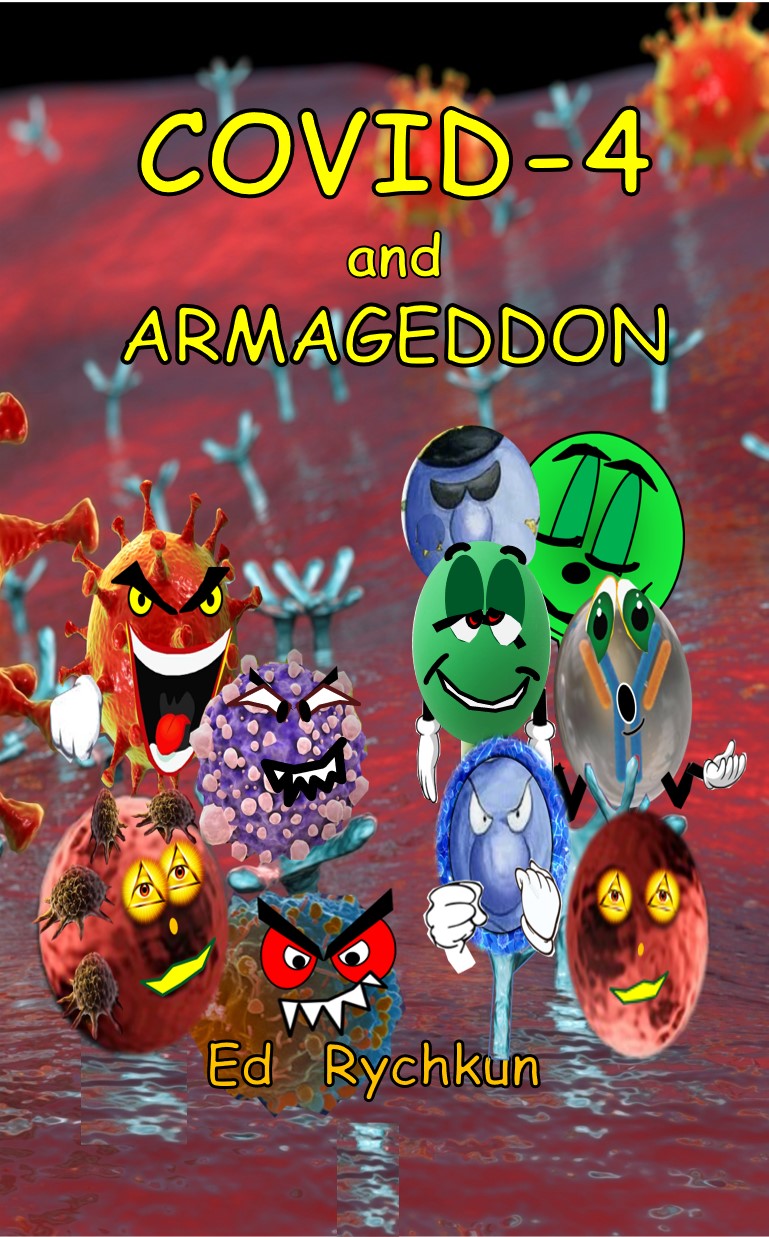 |  |   COVID-4 and ARMAGEDDON COVID-4 and ARMAGEDDON In the fourth short story of the series The Adventures of ACE2, we continue the story of the Good the Bad and the Ugly as a new generation of COVID-3 has escaped into the pandemic to upgrade their COVID-2 origins and to possibly become the world’s most deadly virus. The Bad Guys now united under a new leader COVID-4 are set to create a new plan of dominion with the SARS-cancer-exosome-HIV tactics of infection and replication. Having learned who their Makers are, they have split off to work on the outside while their old family lineage continues to replicate inside their hosts. As their new plan of viral dominion melds lineages, they themselves have become infected by an even smarter enemy. As the Good Guys are now joined by our new human heroes who assemble a plan to take down the Bad Guys by assisting them, the Ugly now appear as the Makers of the Pandemic and the dark plan of their dominion is revealed. As we continue the story, the new assembly of Good Guys forms as a Foundation dedicated to revealing truth and joining forces to implement the final conflict between the Dark and Light agendas for World Dominion. As the good and evil now come face to face into their revelations, humanity is faced with a critical choice between rapture and slavery in the final battle of Armageddon.  Click here to order from Amazon